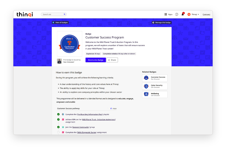 Drive towards professional standards by rewarding your people as they learn. Whether it’s through collaboration, independent or directed learning, use Thinqi’s Badges feature and certification to recognise achievement and link to your incentivisation programmes. It’s a sure-fire way to boost motivation and drive engagement with learning.