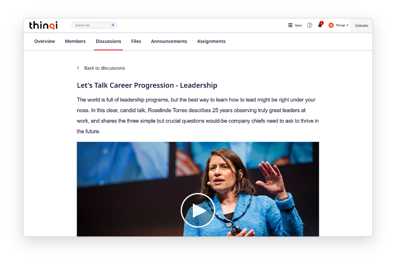 Learning is better shared. Create networks for your employees to join communities of practice pertaining to similar areas of work, themes or disciplines. Thinqi provides a collaborative environment to share knowledge and acts as a central hub to access peer and mentor support – wherever and whenever it’s needed.